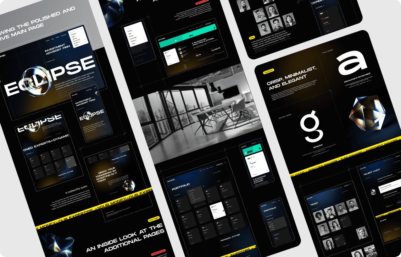 The Eclipse Finance Website Redesign project focuses on transforming the platform's visual and functional elements to improve overall user interaction and strengthen brand recognition. The project uses a dark blue and yellow color scheme to convey trust, professionalism, and energy, aligning with the finance industry's need for a balance of authority and dynamism.